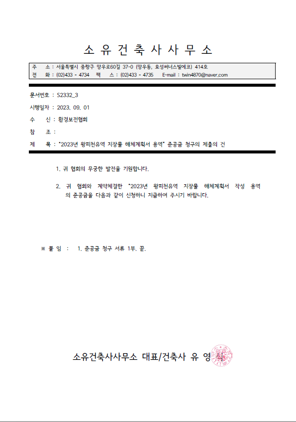 2023년 왕피천유역 지장물 해체계획서용역(신고2건)
