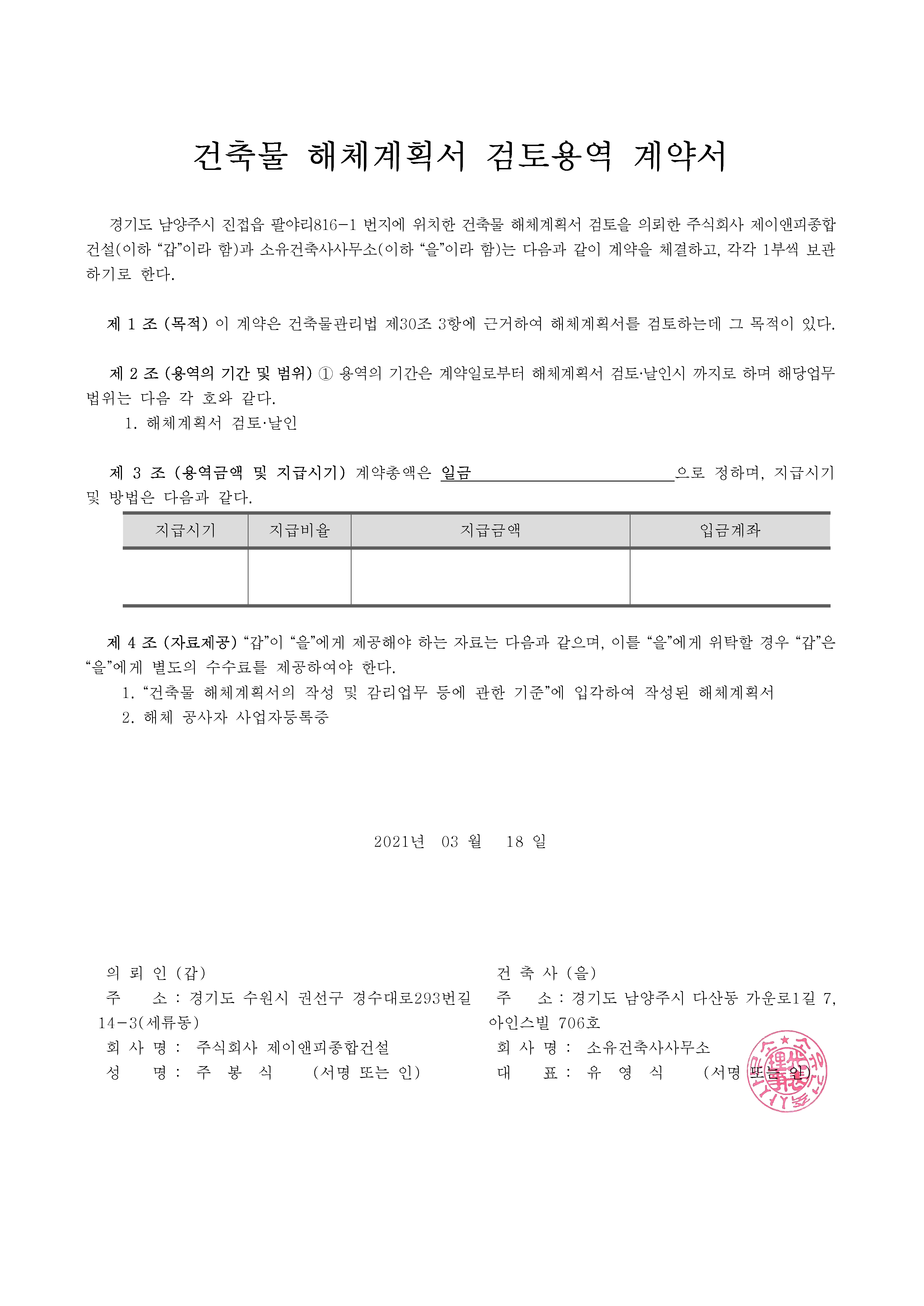 남양주시 진접읍 팔야리 816-1 건축물 해체계획서용역(검토)