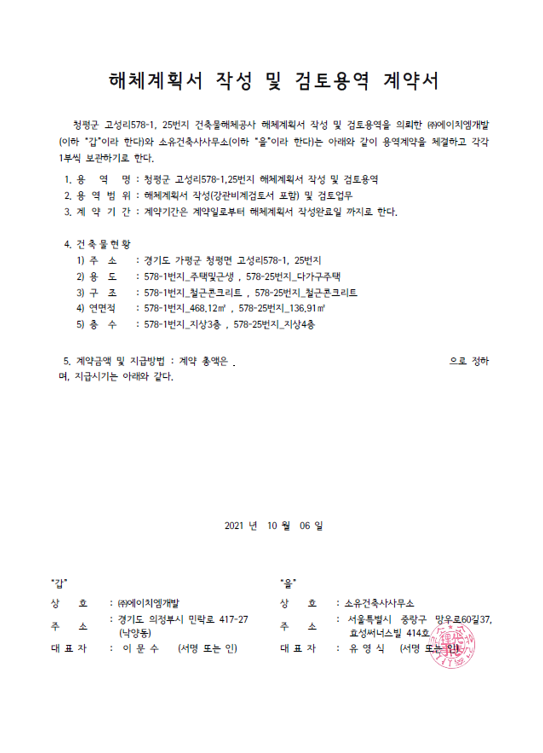 청평군 고성리 일대 건축물 해체계획서용역(허가2건)