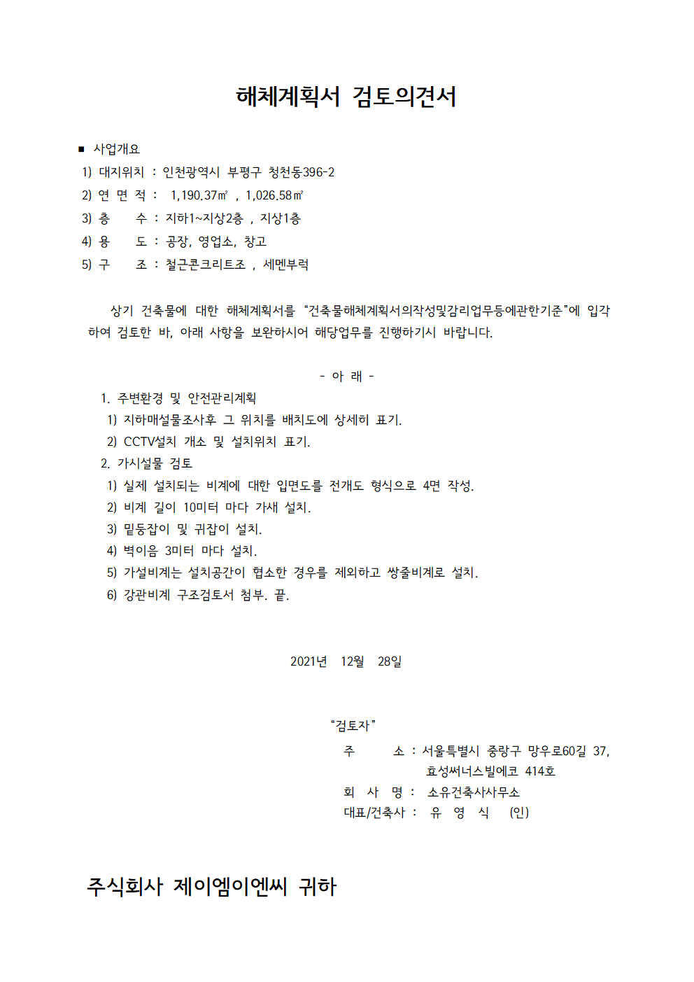 부평구 청천동 396-2 건축물 해체계획서용역(검토)