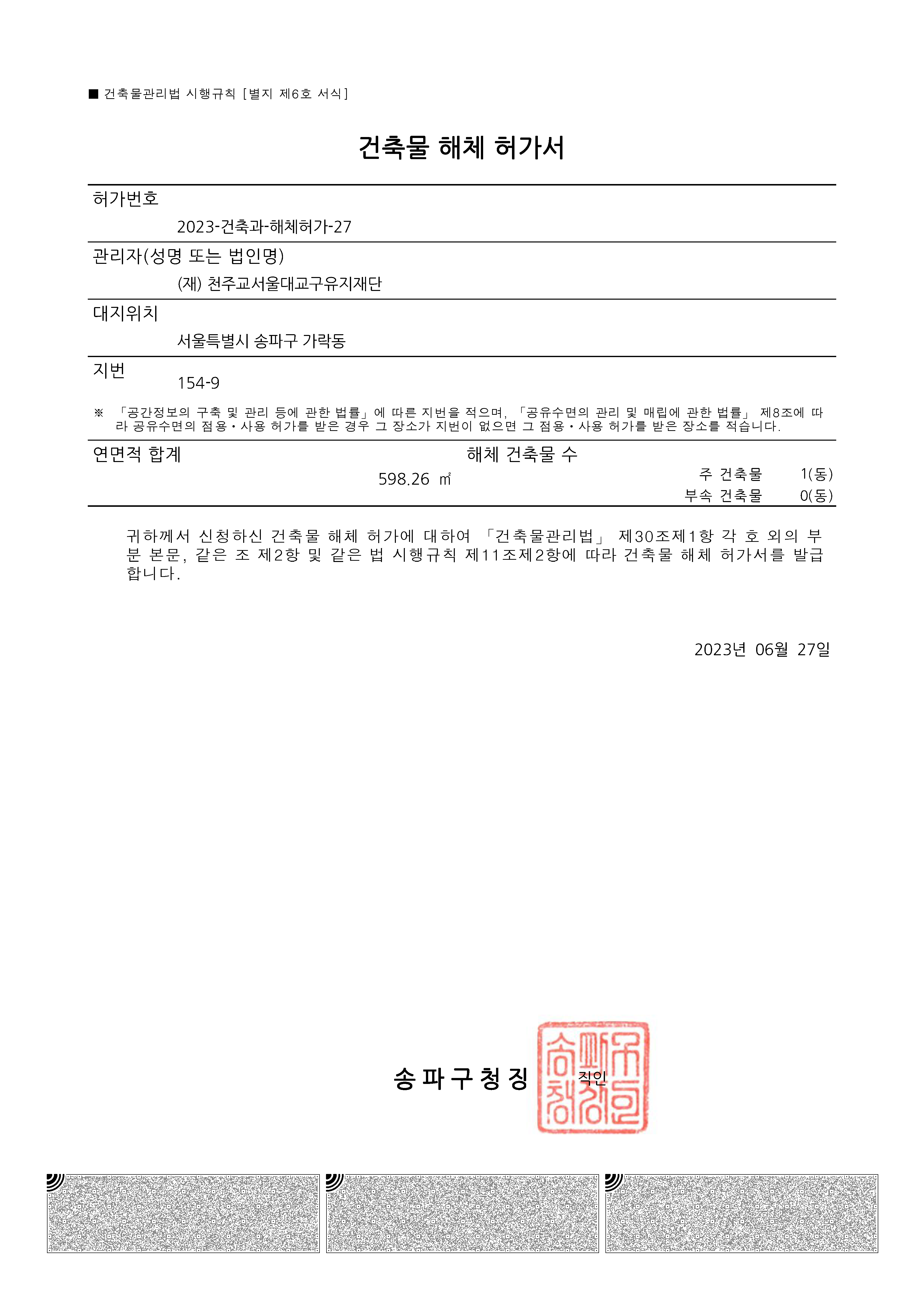 송파구 가락동 154-9,154-10 건축물 해체계획서용역(허가2건)
