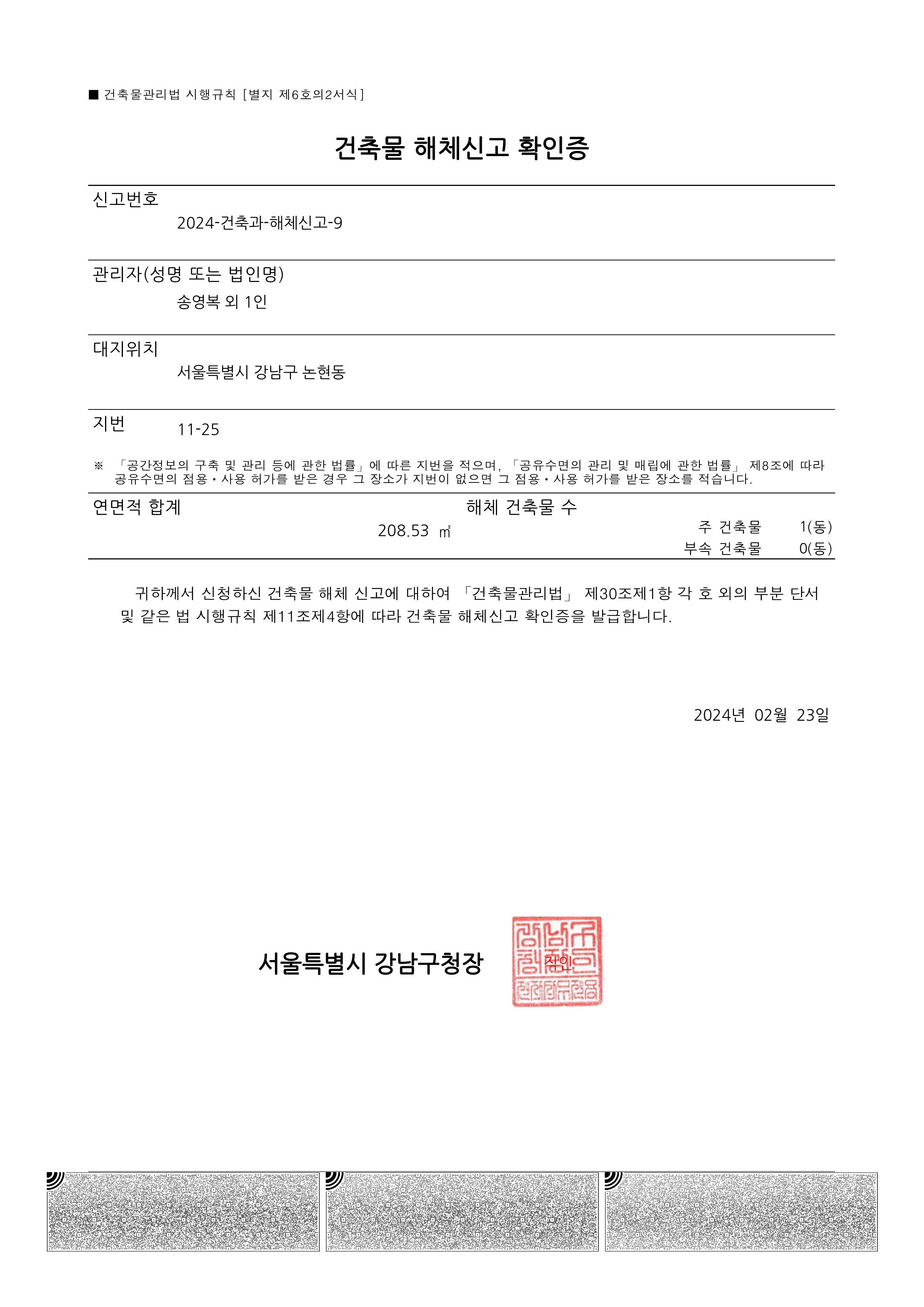 강남구 논현동 11-25 건축물 해체계획서용역(신고)
