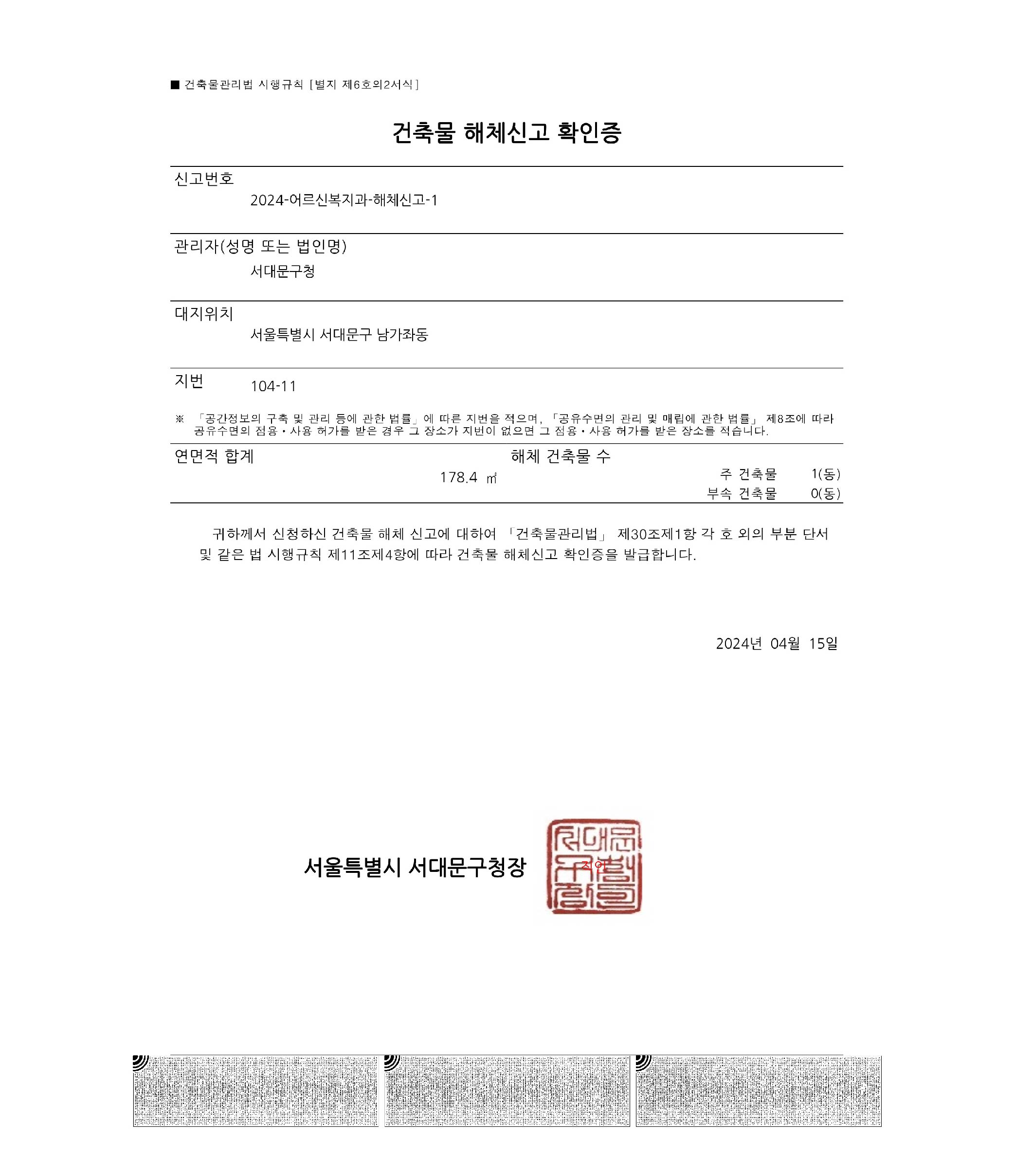 서대문구 남가좌동 104-11 건축물 해체계획서용역(신고)